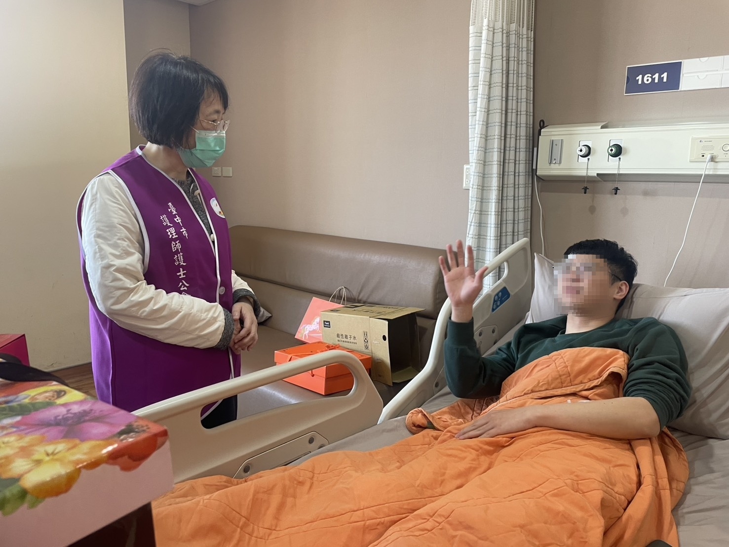 為表達對受傷會員之關懷與支持,本會已於1月23日由常務理事張美玉及張淑華總幹事前往醫院探視受傷護理師,代表徐逸民理事長及全體理監事,表達誠摯慰問之意,並關心其身體復原狀況與後續心理支持需求,盼受傷同仁能安心休養、早日康復。